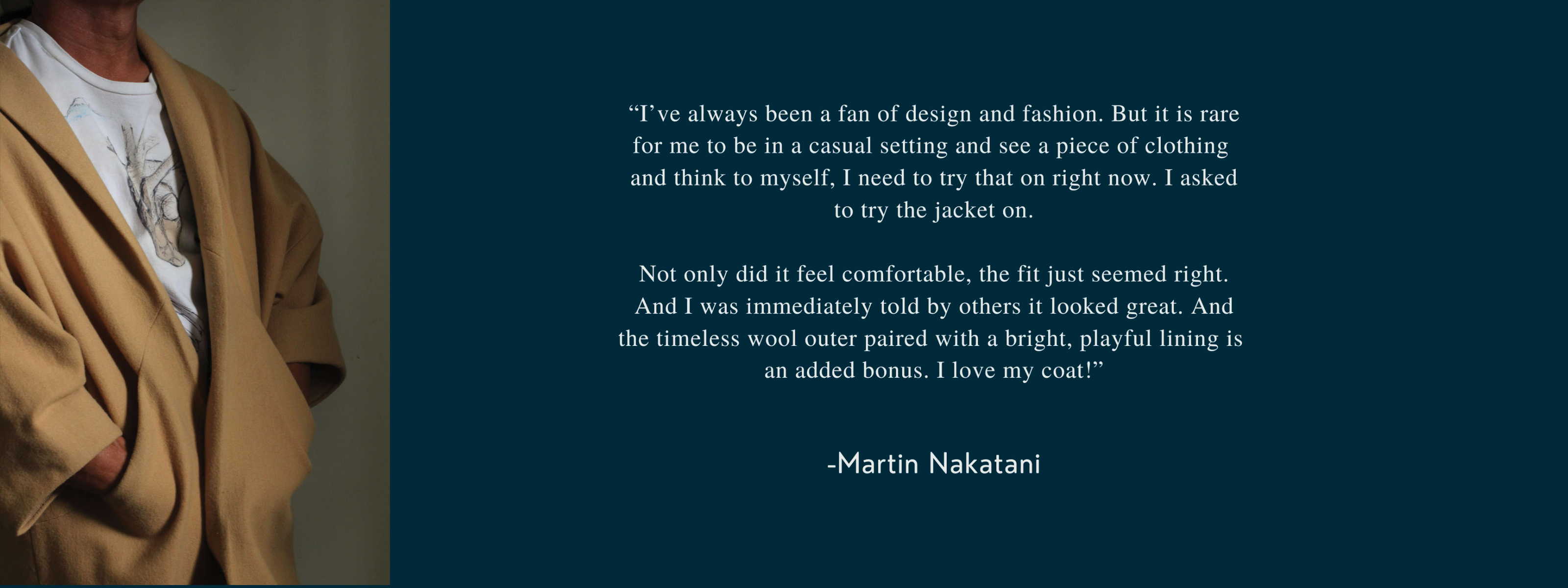 Yet, we offer the ability to adjust your sleeve and hem lengths before your coat is produced. Made specifically for you after your order is placed, HoM saves you time and money on costly alterations while minimizing waste. Have a fit request that isn’t addressed in the ordering process? Reach out — we’re happy to chat.